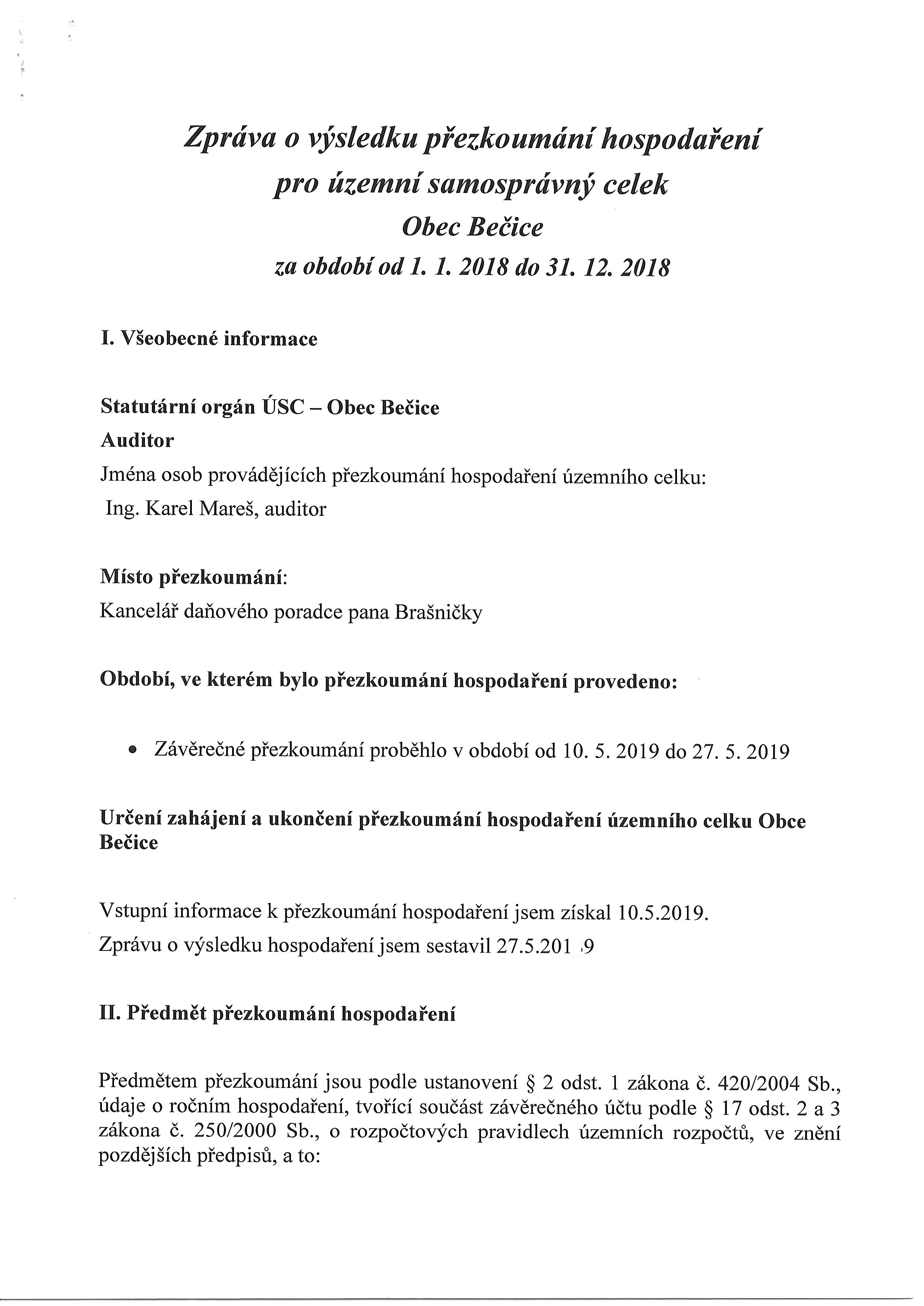 Závěrečná zpráva a účetní uzávěrka obce Bečice za rok 2025